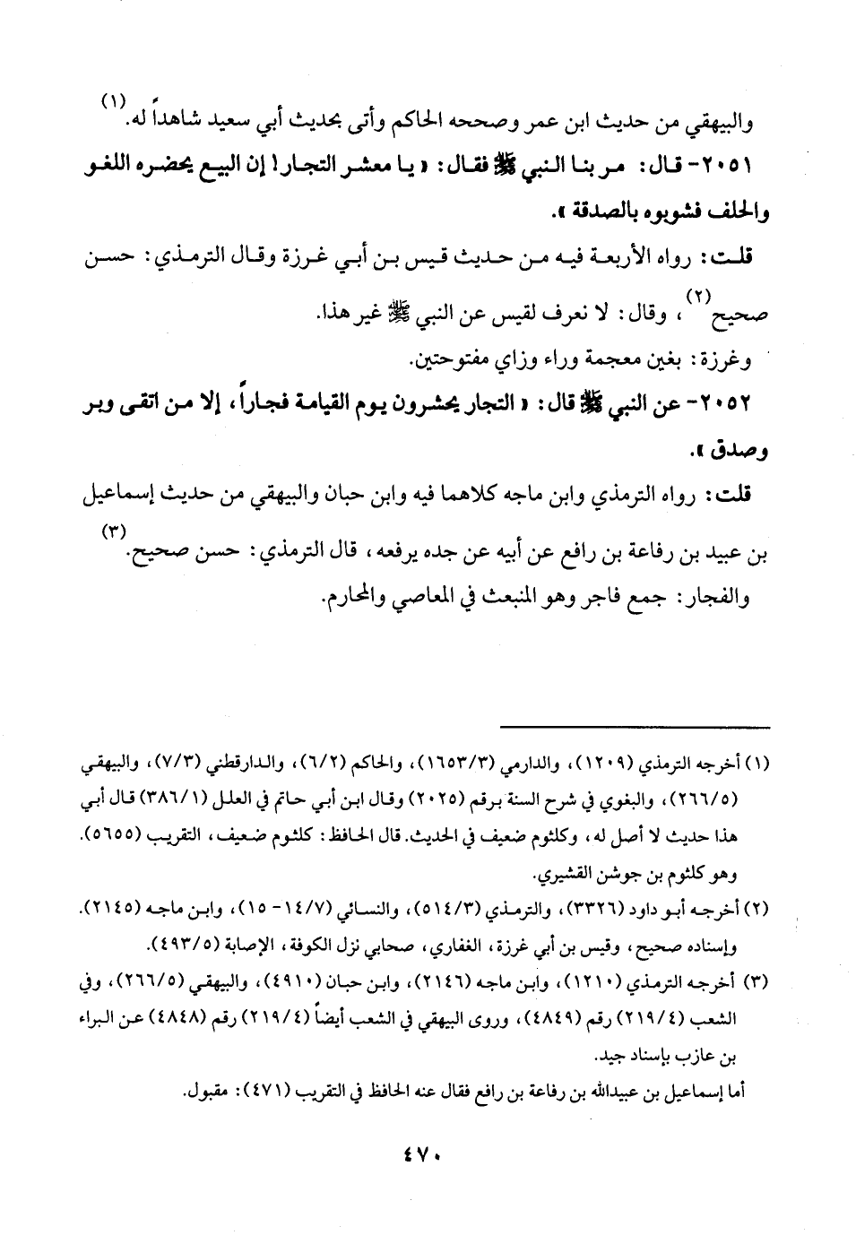 2052 - عن النبي -صلى الله عليه وسلم- قال: "التجار يحشرون يوم القيامة فجارًا، إلا من اتقى وبر وصدق".