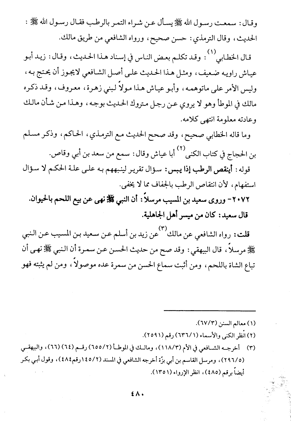 2072 - وروى سعيد بن المسيّب مرسلًا: أن النبي -صلى الله عليه وسلم- نهى عن بيع اللحم بالحيوان.