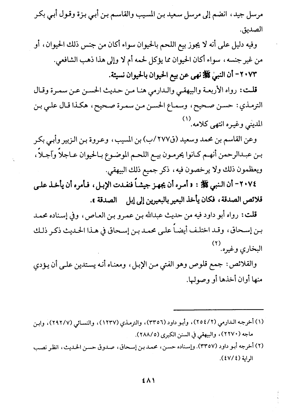 2073 - أن النبي -صلى الله عليه وسلم- نهى عن بيع الحيوان بالحيوان نسيئة.