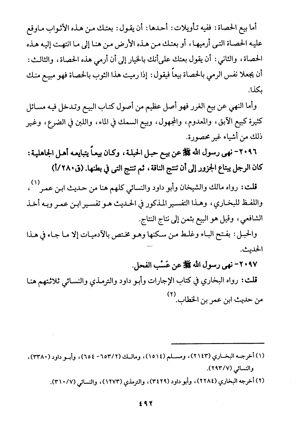 2096 - نهى رسول الله -صلى الله عليه وسلم- عن بيع حبل الحبلة، وكان بيعًا يتبايعه أهل الجاهلية: كان الرجل يبتاع الجزور إلى أن تنتج الناقة، ثمَّ تنتج التي في بطنها.