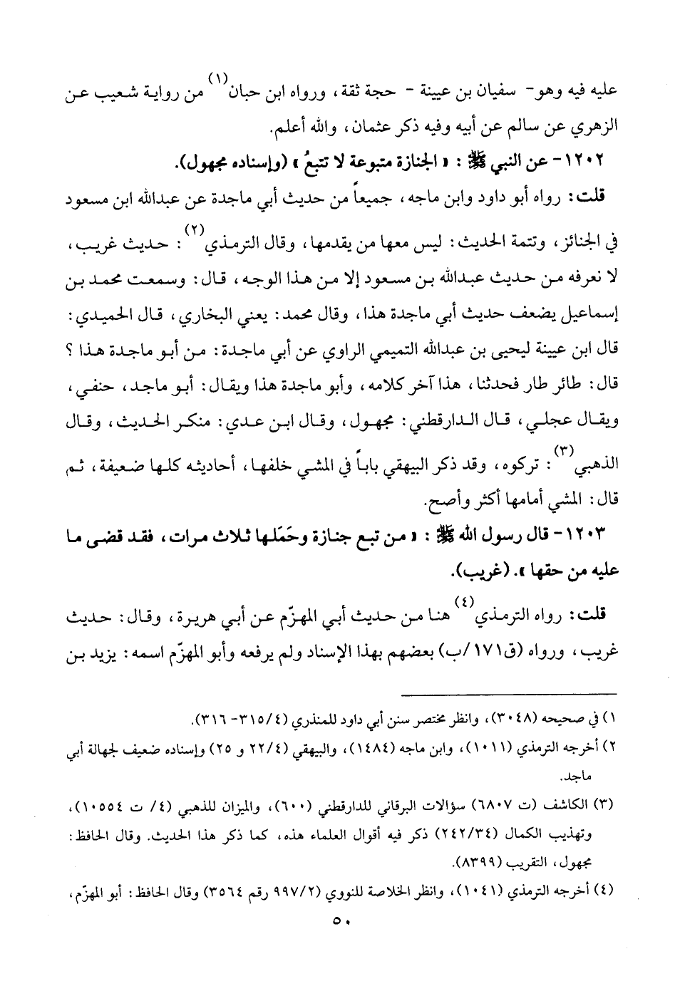 1202 - عن النبي - صلى الله عليه وسلم -: "الجنازة متبوعة لا تتبعُ" (وإسناده مجهول).