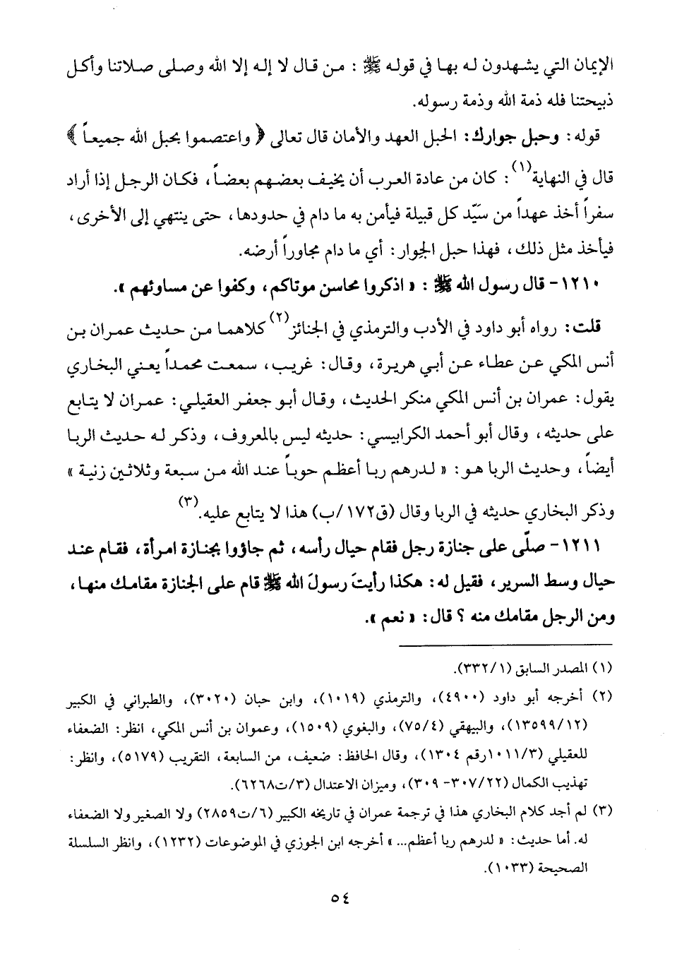 (¬3) لم أجد كلام البخاري هذا في ترجمة عمران في تاريخه الكبير (6/ ت 2859) ولا الصغير ولا الضعفاء له. أما حديث: "لدرهم ربا أعظم ... " أخرجه ابن الجوزي في الموضوعات (1232)، وانظر السلسلة الصحيحة (1033).