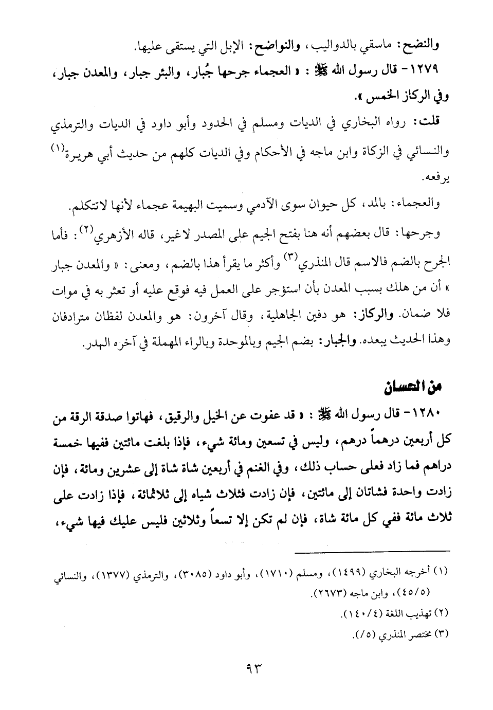 1279 - قال رسول الله -صلى الله عليه وسلم-: "العجماء جرحها جُبار، والبئر جبار، والمعدن جبار، وفي الركاز الخمس".