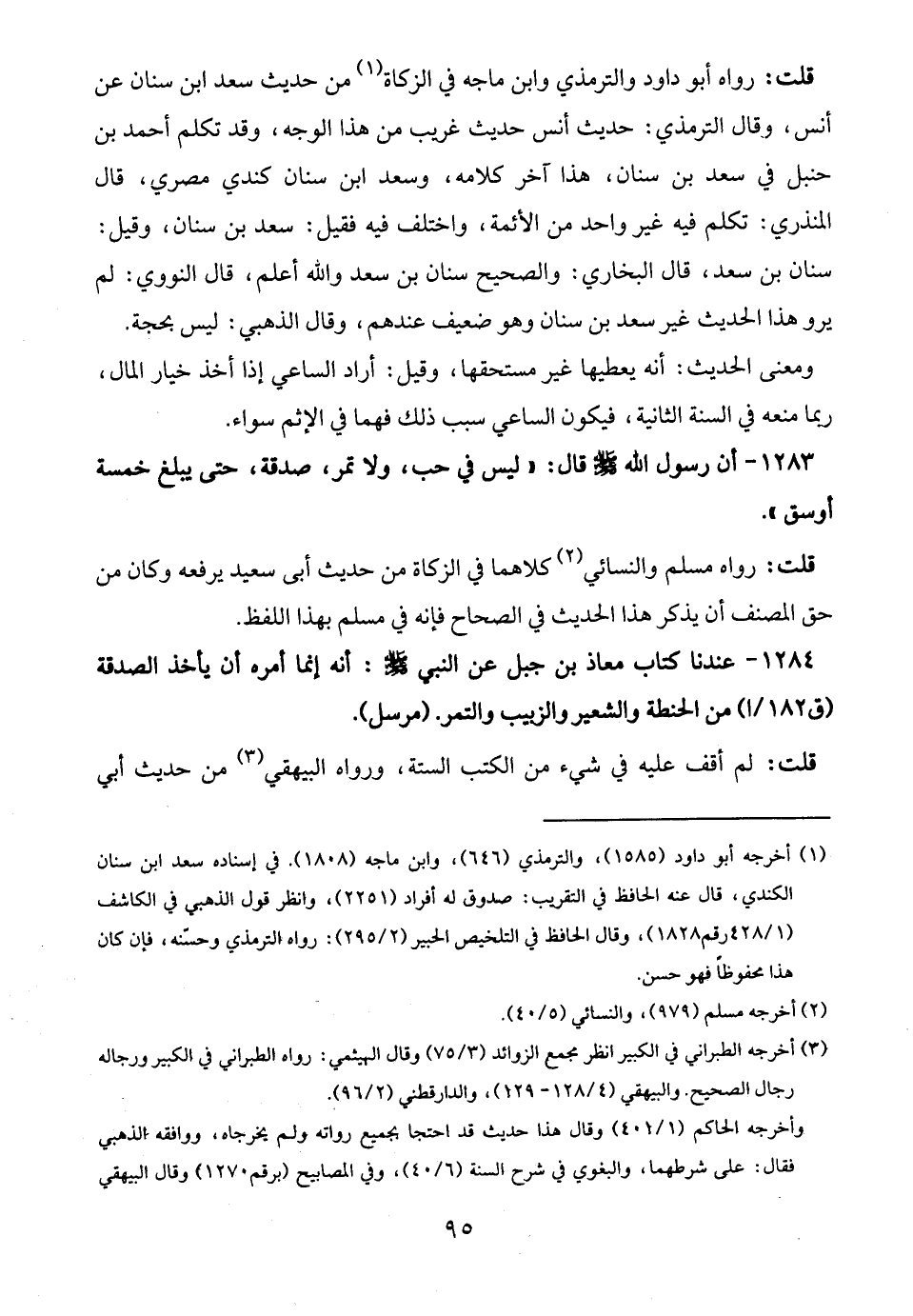 1283 - أن رسول الله -صلى الله عليه وسلم- قال: "ليس في حب، ولا تمر، صدقة، حتى يبلغ خمسة أوسق".