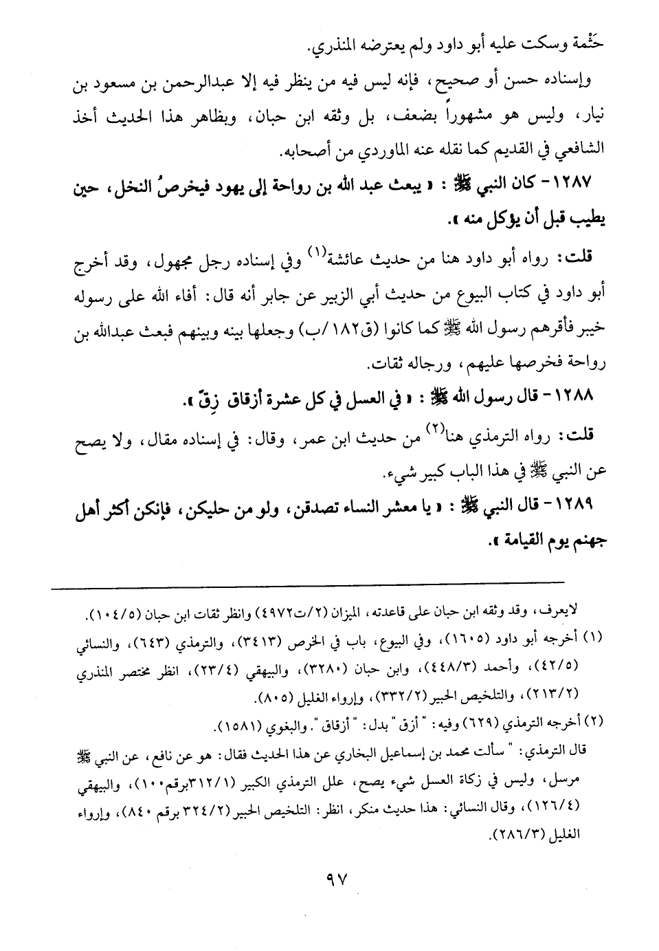 1287 - كان النبي -صلى الله عليه وسلم-: "يبعث عبد الله بن رواحة إلى يهود فيخرصُ النخل، حين يطيب قبل أن يؤكل منه".