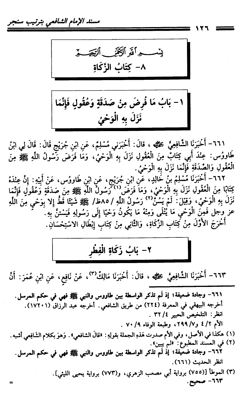 كتاب مسند الشافعي - ترتيب سنجر (اسم الجزء: 2)