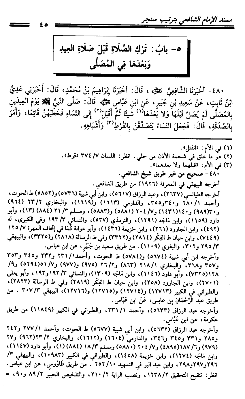كتاب مسند الشافعي - ترتيب سنجر (اسم الجزء: 2)