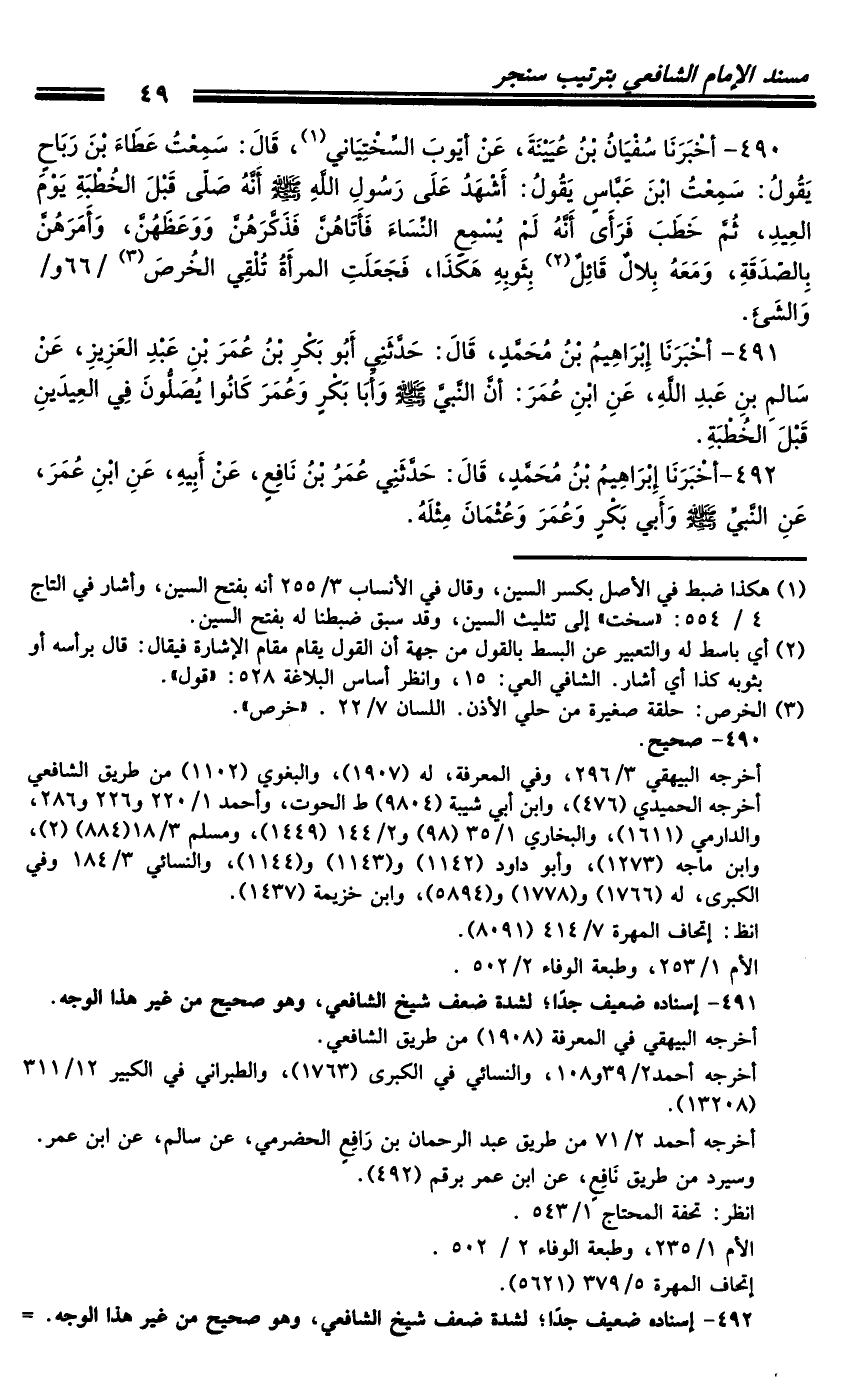 كتاب مسند الشافعي - ترتيب سنجر (اسم الجزء: 2)
