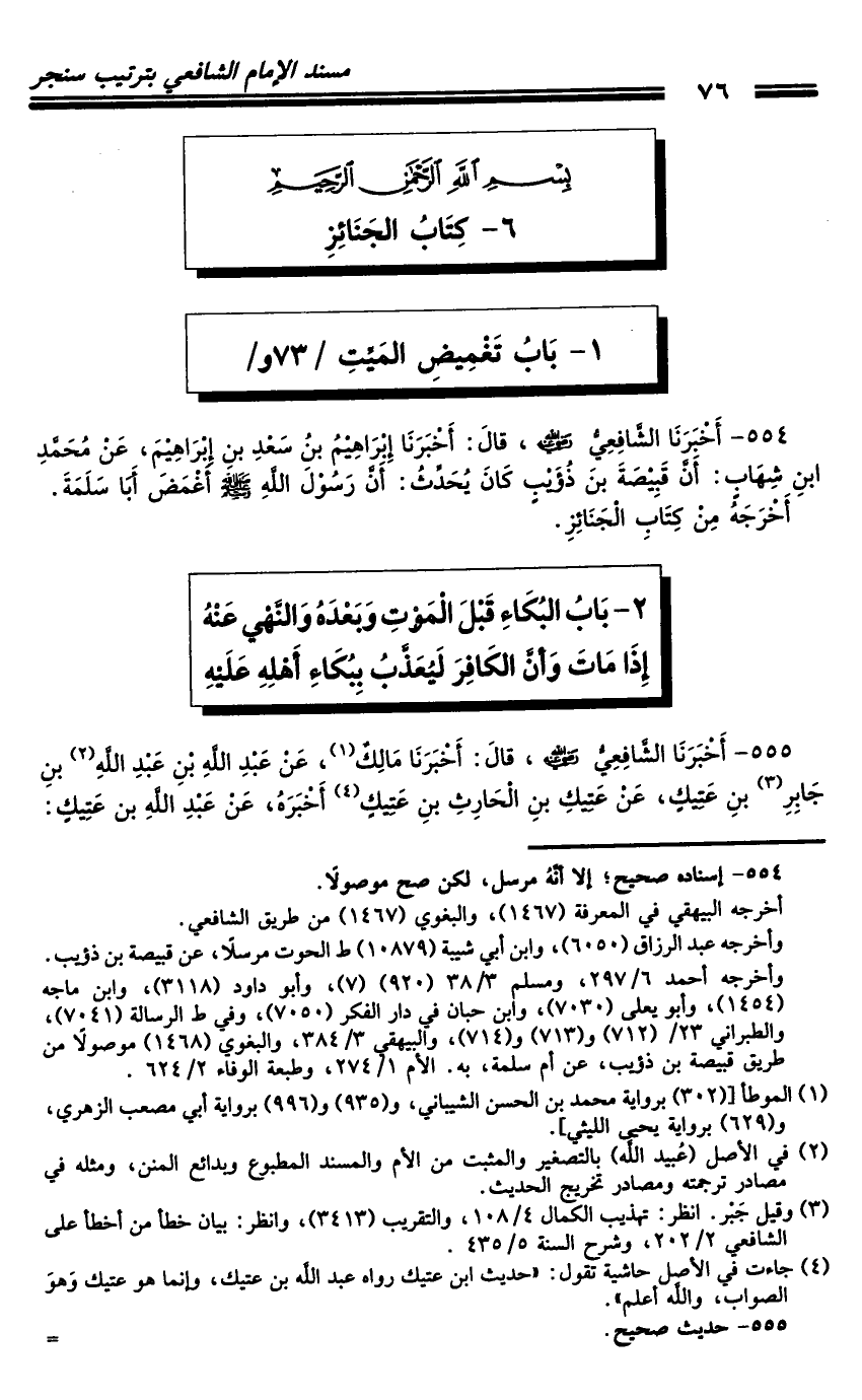كتاب مسند الشافعي - ترتيب سنجر (اسم الجزء: 2)