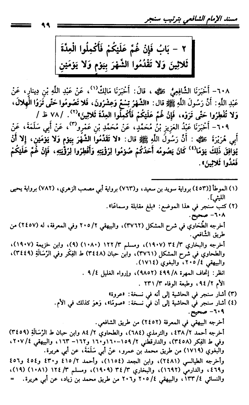 كتاب مسند الشافعي - ترتيب سنجر (اسم الجزء: 2)