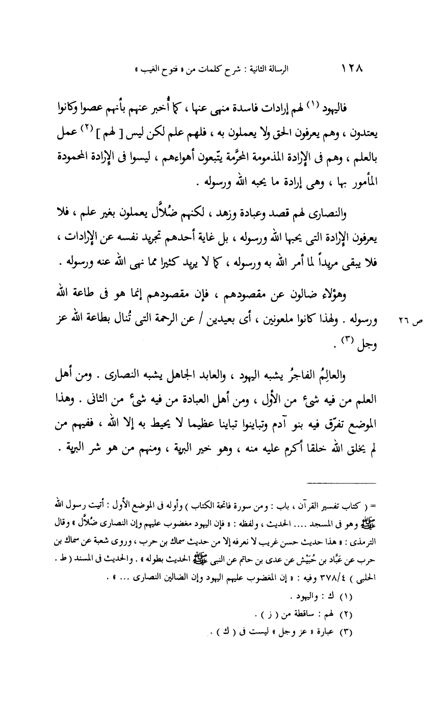 فاليهود لَهُم إرادات فَاسِدَة مَنْهِيّ عَنْهَا كَمَا أخبر عَنْهُم: بِأَنَّهُم عصوا وَكَانُوا يعتدون. وهم يعْرفُونَ الْحق وَلَا يعْملُونَ بِهِ فَلهم علم لَكِن لَيْسَ لَهُم عمل بِالْعلمِ وهم فِي الْإِرَادَة المذمومة الْمُحرمَة يتبعُون أهواءهم لَيْسُوا فِي الْإِرَادَة المحمودة الْمَأْمُور بهَا وَهِي إِرَادَة مَا يُحِبهُ الله وَرَسُوله.