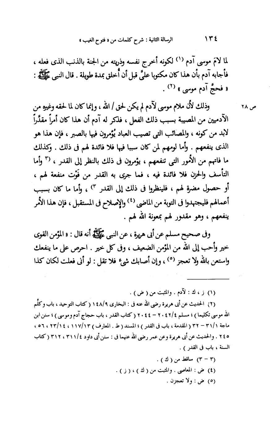 وَفِي صَحِيح مُسلم عَن أبي هُرَيْرَة عَن النَّبِي صلى الله عَلَيْهِ وَسلم أَنه قَالَ: " {الْمُؤمن الْقوي خير وَأحب إِلَى الله من الْمُؤمن الضَّعِيف وَفِي كل خير احرص على مَا ينفعك واستعن بِاللَّه وَلَا تعجز. وَإِن أَصَابَك شَيْء فَلَا تقل: لَو أَنِّي فعلت لَكَانَ كَذَا