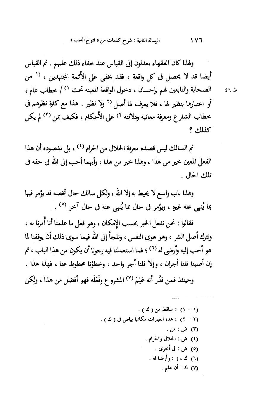 ثمَّ السالك لَيْسَ قَصده معرفَة الْحَلَال من الْحَرَام؛ بل مَقْصُوده أَن هَذَا الْفِعْل الْمعِين خير من هَذَا وَهَذَا خير من هَذَا وَأيهمَا أحب إِلَى الله فِي حَقه فِي تِلْكَ الْحَال.