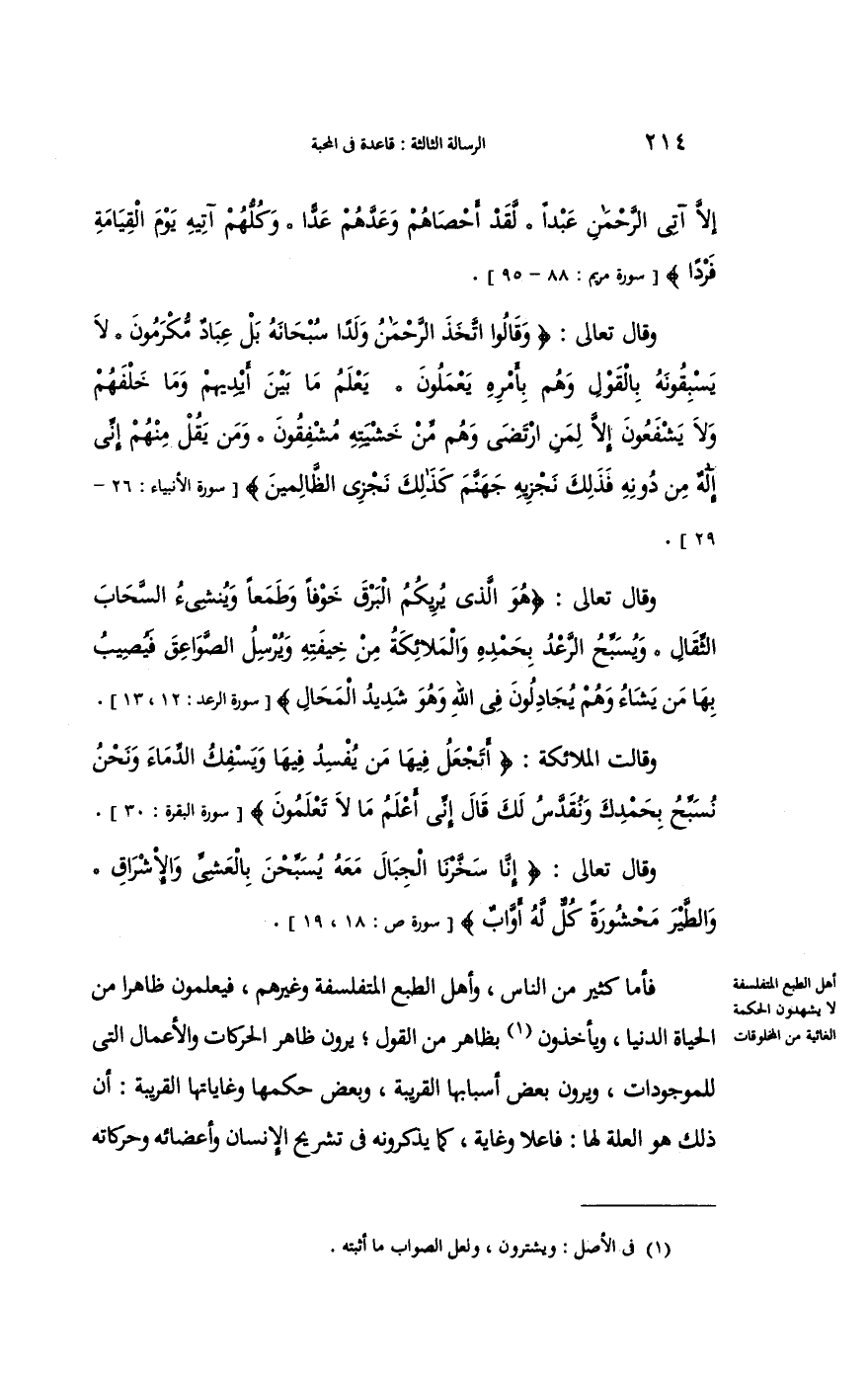 أهل الطَّبْع المتفلسفة لَا يشْهدُونَ الْحِكْمَة الغائية من الْمَخْلُوقَات