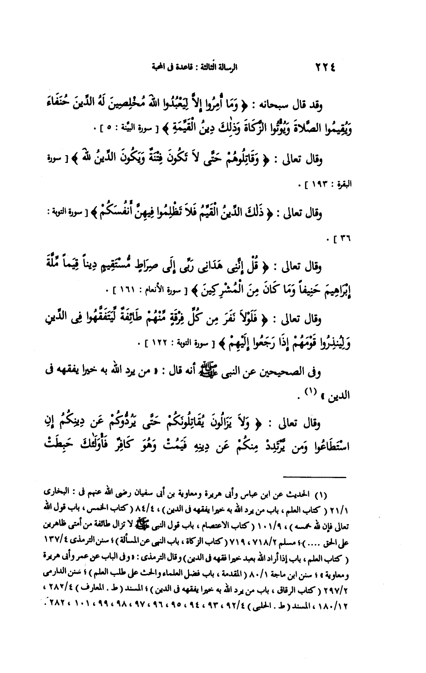 وَقَالَ تَعَالَى قل إِنَّنِي هَدَانِي رَبِّي إِلَى صِرَاط مُسْتَقِيم دينا قيمًا مِلَّة إِبْرَاهِيم حَنِيفا وَمَا كَانَ من الْمُشْركين