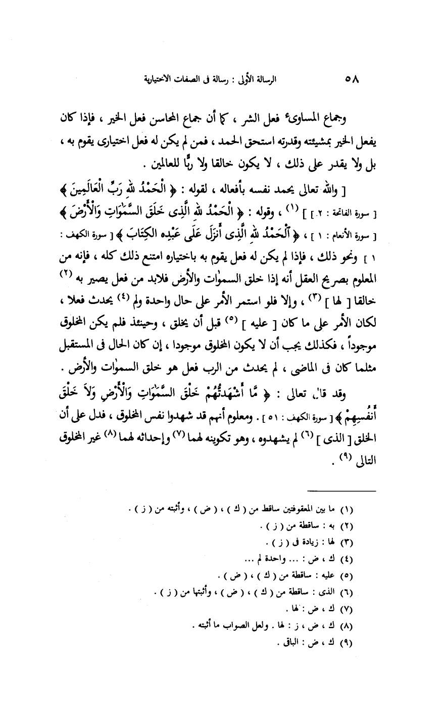 وجماع المساوئ فعل الشَّرّ كَمَا أَن جماع المحاسن فعل الْخَيْر. فَإِذا كَانَ يفعل الْخَيْر - بمشيئته وَقدرته اسْتحق " الْحَمد ". فَمن لم يكن لَهُ فعل اخْتِيَاري يقوم بِهِ؛ بل وَلَا يقدر على ذَلِك لَا يكون خَالِقًا وَلَا رَبًّا للْعَالمين.