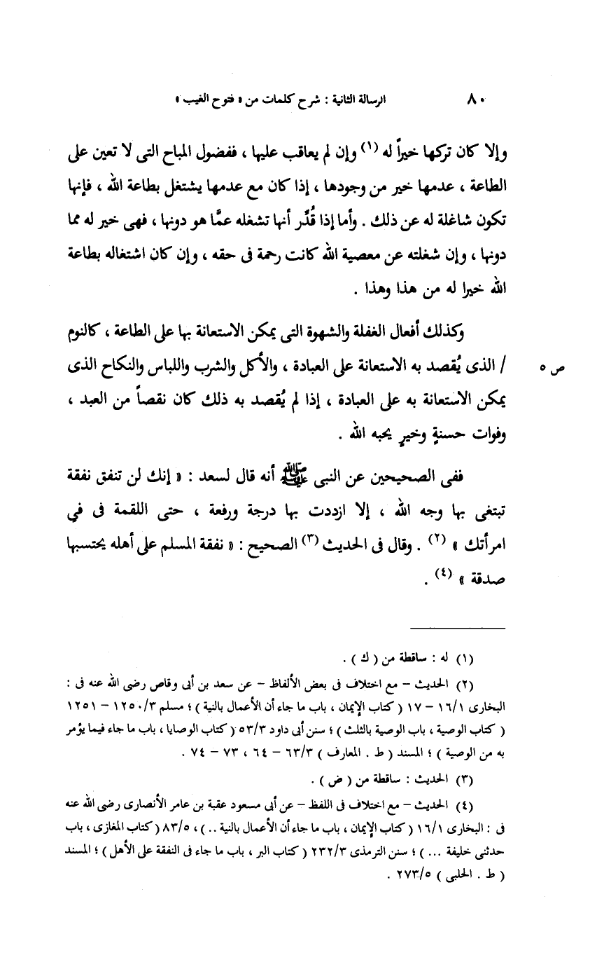 وَكَذَلِكَ أَفعَال الْغَفْلَة والشهوة الَّتِي يُمكن الِاسْتِعَانَة بهَا على الطَّاعَة: كالنوم الَّذِي يقْصد بِهِ الِاسْتِعَانَة على الْعِبَادَة؛ وَالْأكل وَالشرب واللباس وَالنِّكَاح الَّذِي يُمكن الِاسْتِعَانَة بِهِ على الْعِبَادَة؛ إِذا لم يقْصد بِهِ ذَلِك كَانَ ذَلِك نقصا من العَبْد وفوات حَسَنَة؛ وَخير يُحِبهُ الله.