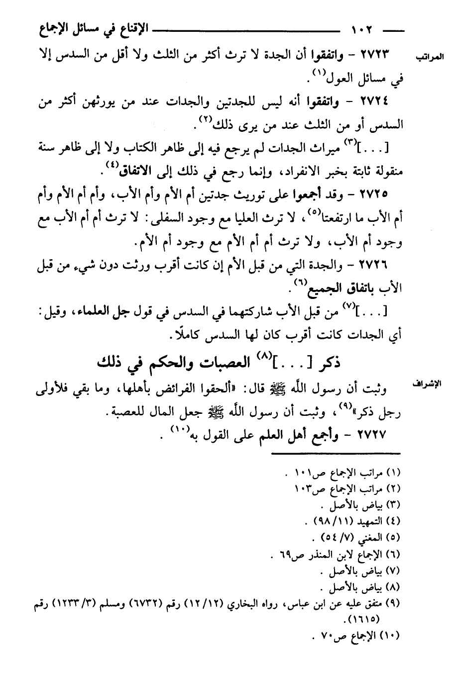 [....] ميراث الجدات لم يرجع فيه إلى ظاهر الكتاب ولا إلي ظاهر سنة منقولة ثابتة بخبر الانفراد، وإنما رجع في ذلك إلى الاتفاق.