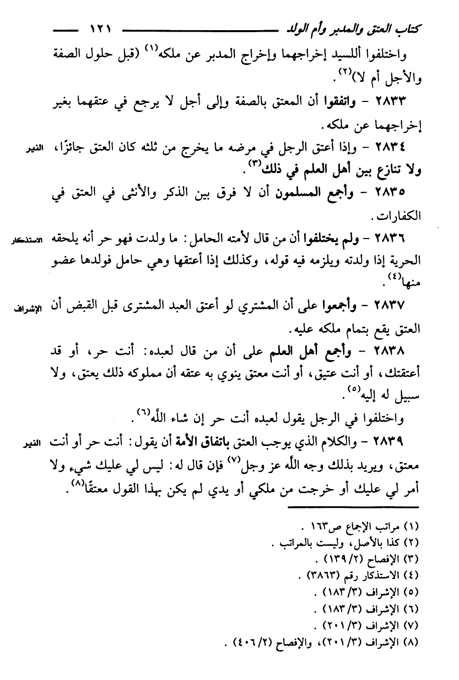 ٢٨٣٨ - وأجمع أهل العلم على أن من قال لعبده: أنت حر، أو قد أعتقتك، أو أنت عتيق، أو أنت معتق ينوي به عتقه أن مملوكه ذلك يعتق، ولا سبيل له إليه.