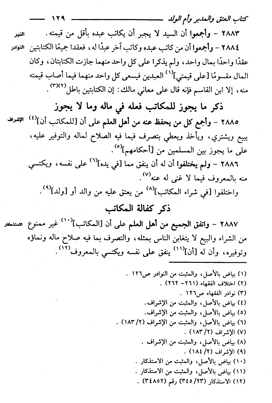 ٢٨٨٥ - وأجمع كل من يحفظ عنه من أهل العلم على أن [للمكاتب أن] يبيع ويشتري، ويأخذ ويعطي بتصرف فيما فيه الصلاح لماله والتوفير عليه، على ما يجوز بين المسلمين من [أحكامهم].