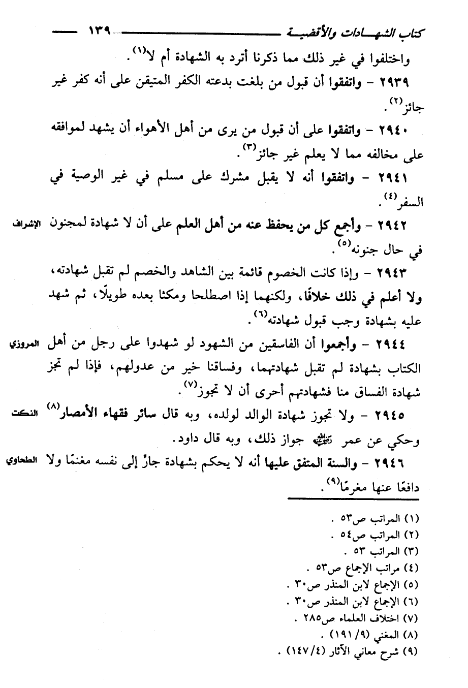 ٢٩٤٠ - واتفقوا على أن قبول من يرى من أهل الأهواء أن يشهد لموافقه على مخالفة مما لا يعلم غير جائز.