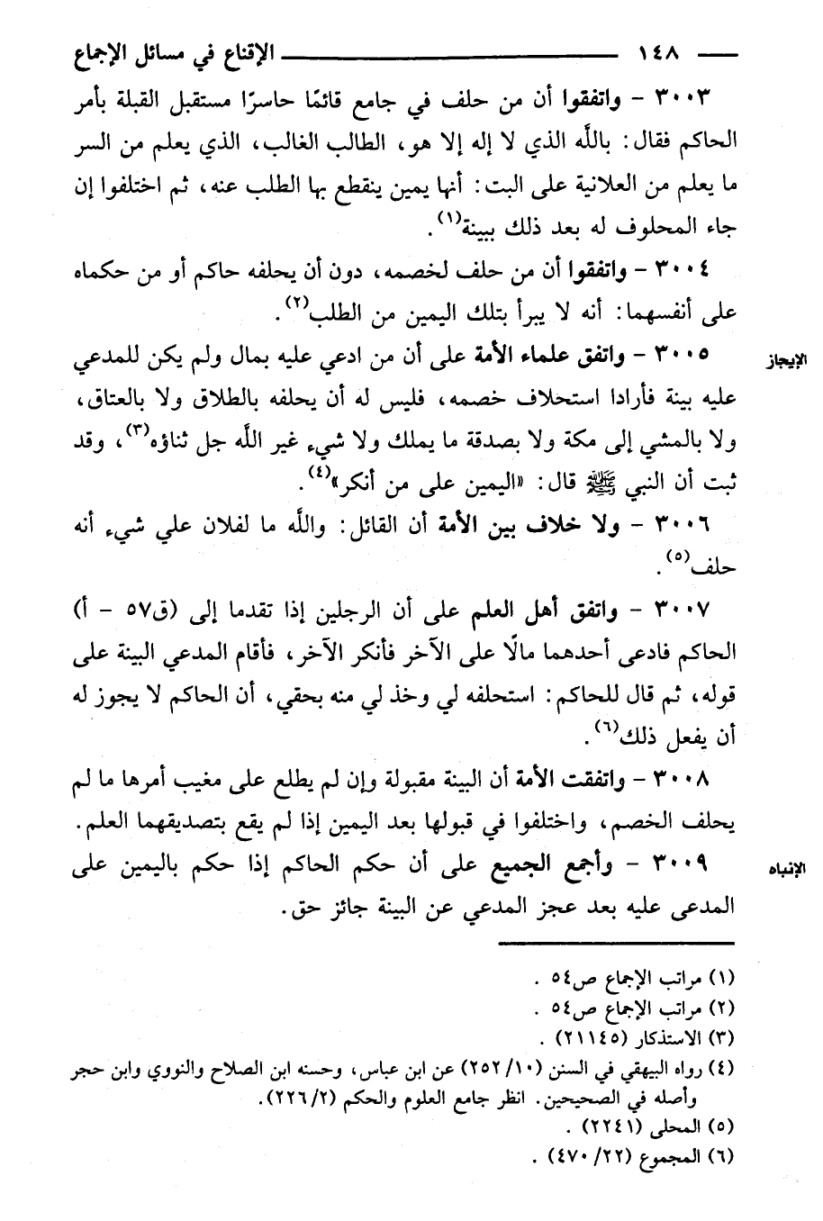 ٣٠٠٩ - وأجمع الجميع على أن حكم الحاكم إذا حكم باليمين على المدعى عليه بعد عجز المدعي عن البينة جائز حق.
