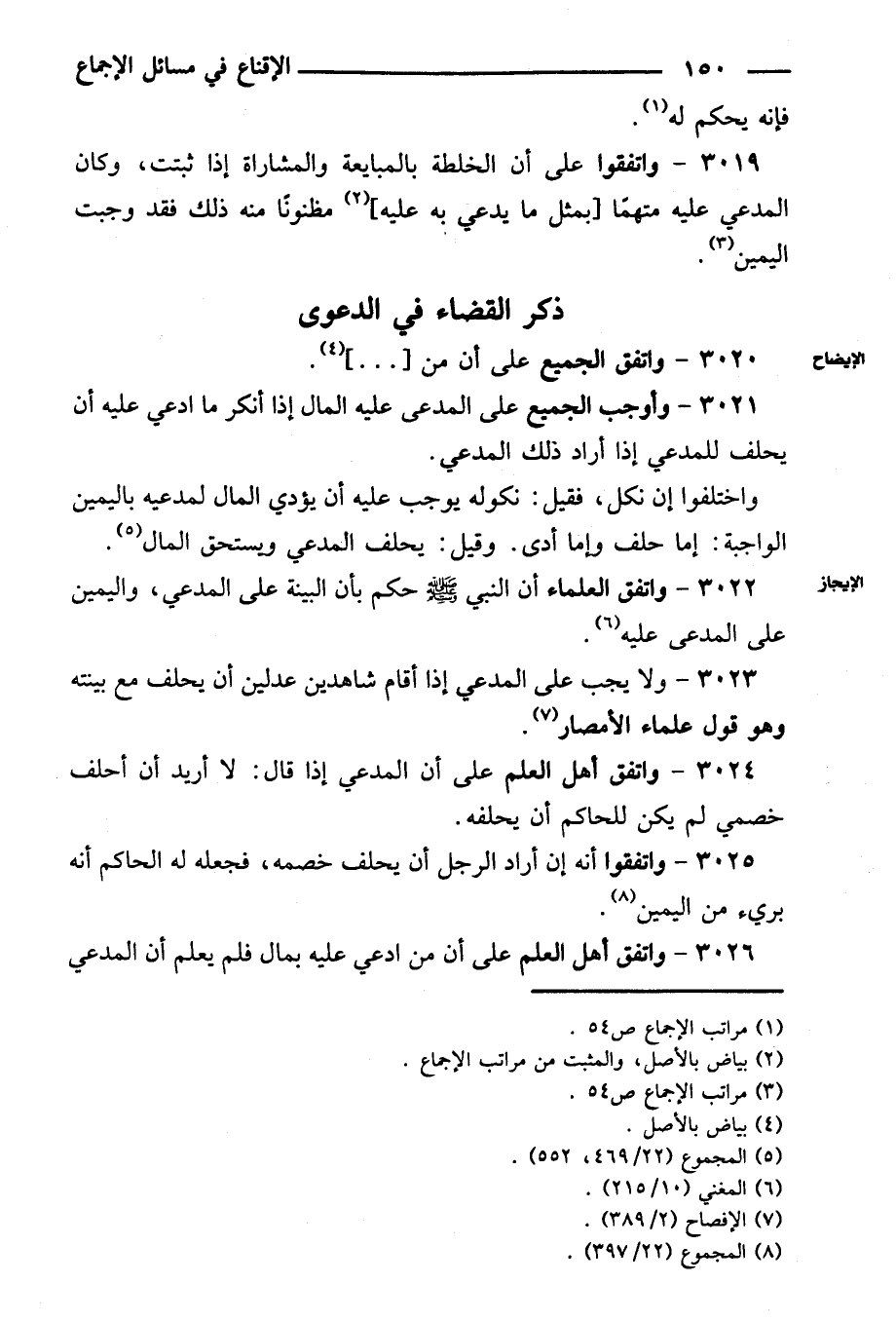 ٣٠٢٢ - واتفق العلماء أن النبي صلى الله عليه وسلم حكم بأن البينة على المدعي، واليمين على المدعى عليه.