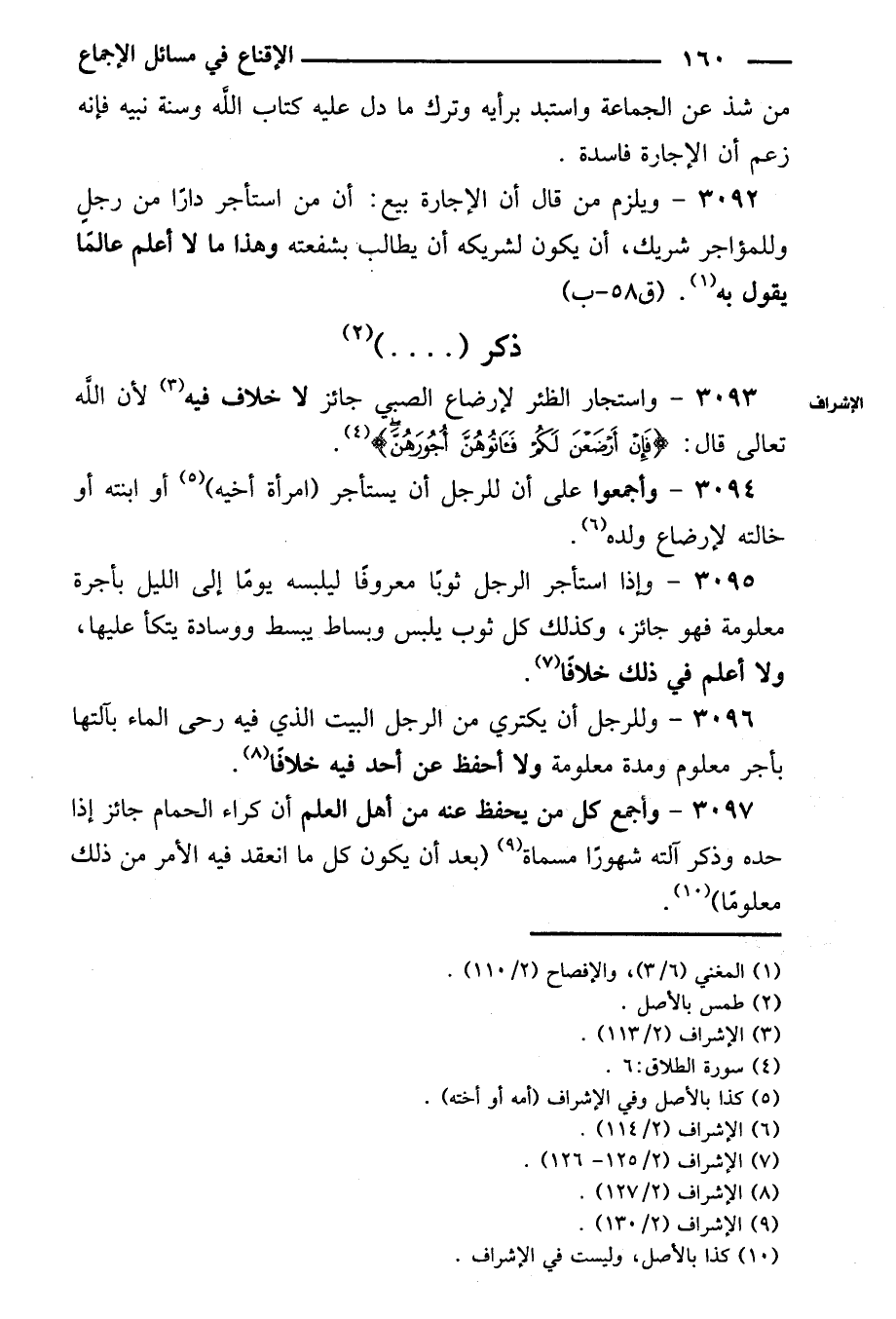 ٣٠٩٤ - وأجمعوا على أن للرجل أن يستأجر (امرأة أخيه) أو ابنته أو خالته لإرضاع ولده.
