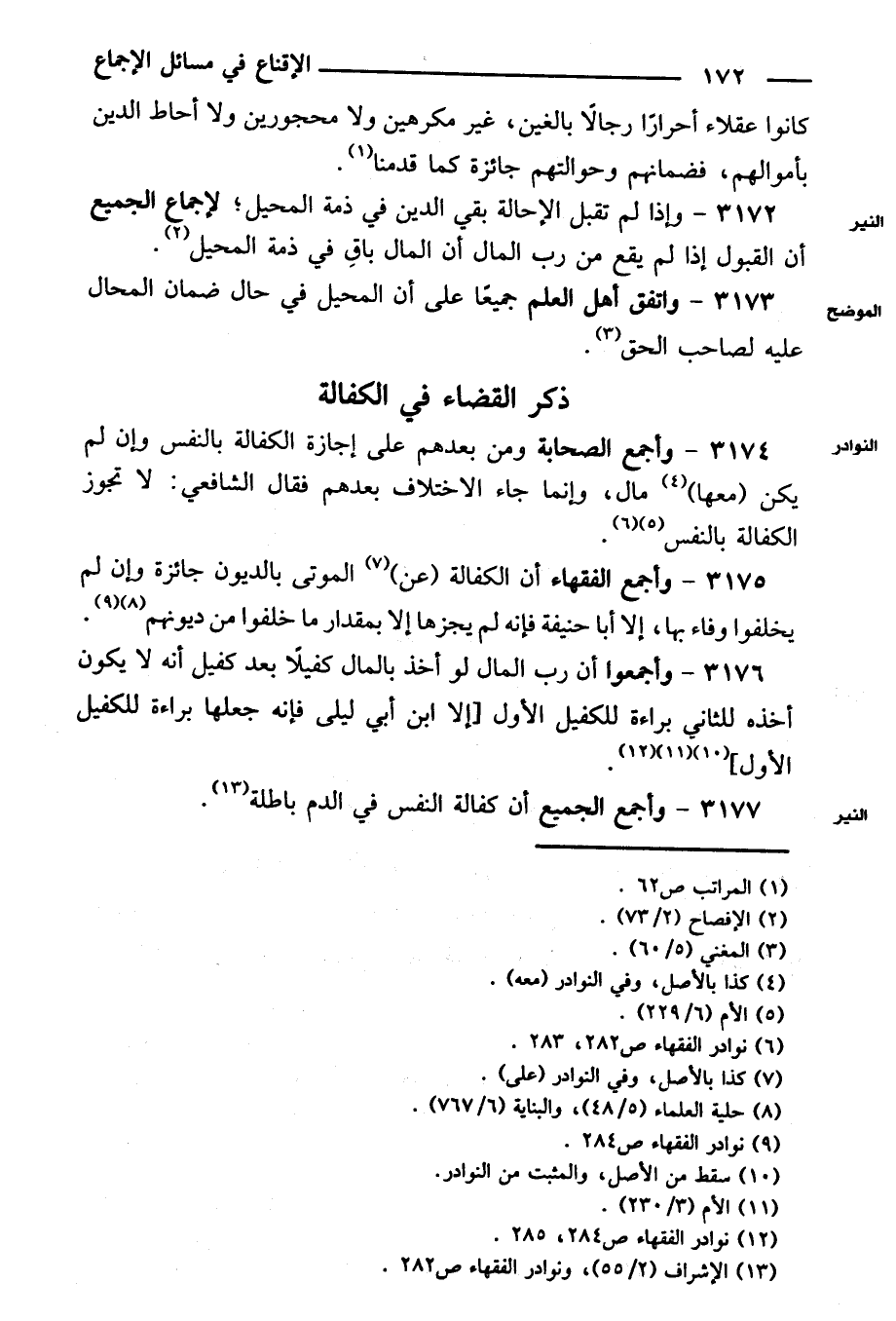 ٣١٧٧ - وأجمع الجميع أن كفالة النفس في الدم باطلة.