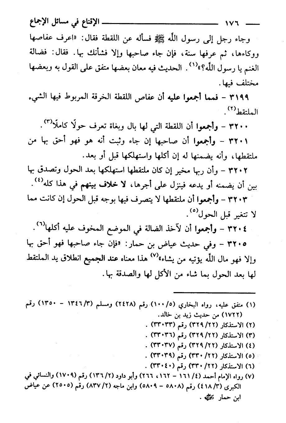٣٢٠٠ - وأجمعوا أن اللقطة التي لها بال وبغاة تعرف حولاً كاملاً.