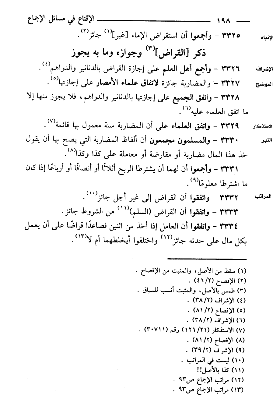 ٣٣٣٣ - واتفقوا القارض (السلم) من الشروط جائز.
