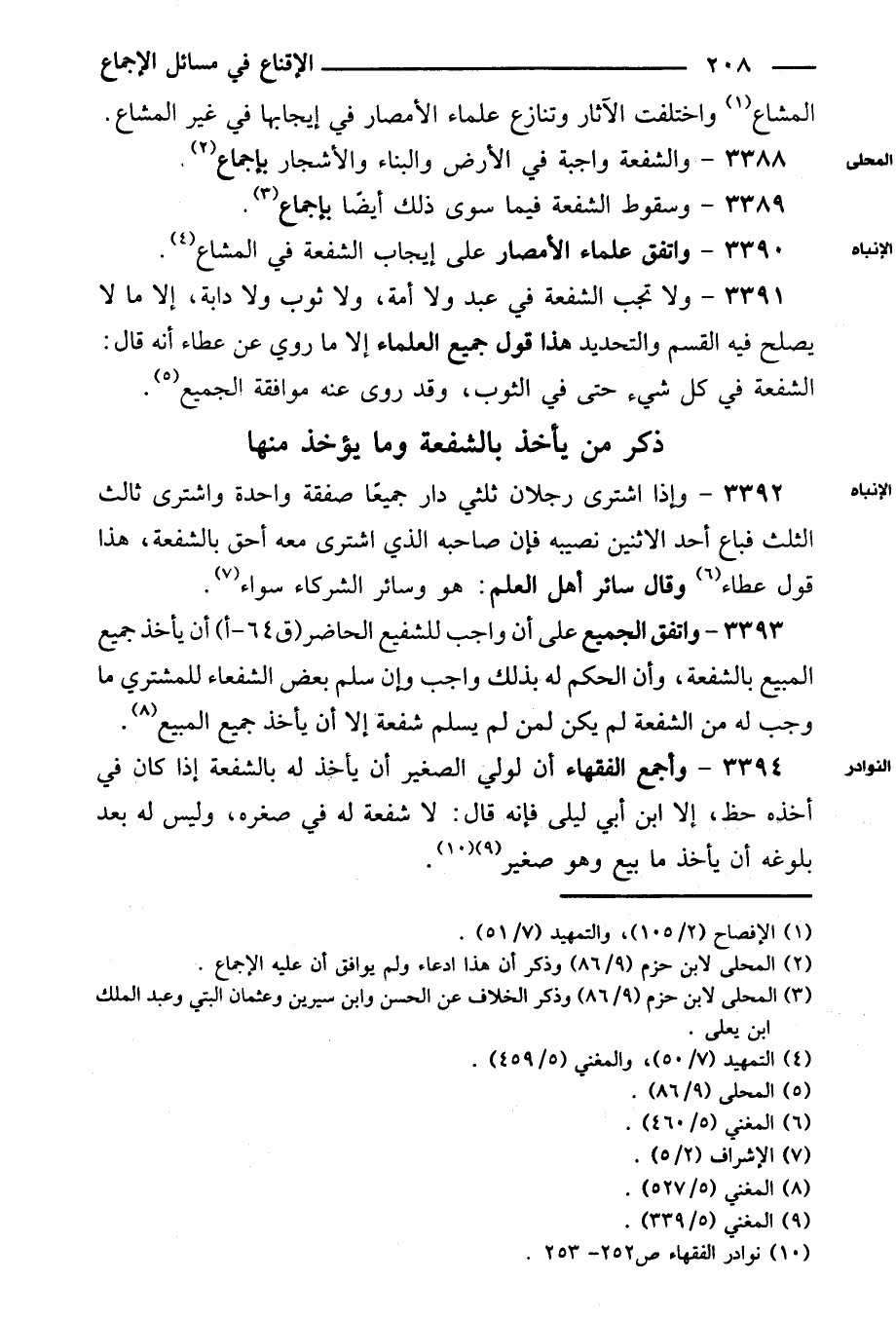 ٣٣٨٩ - وسقوط الشفعة فيما سوى ذلك أيضًا بإجماع.