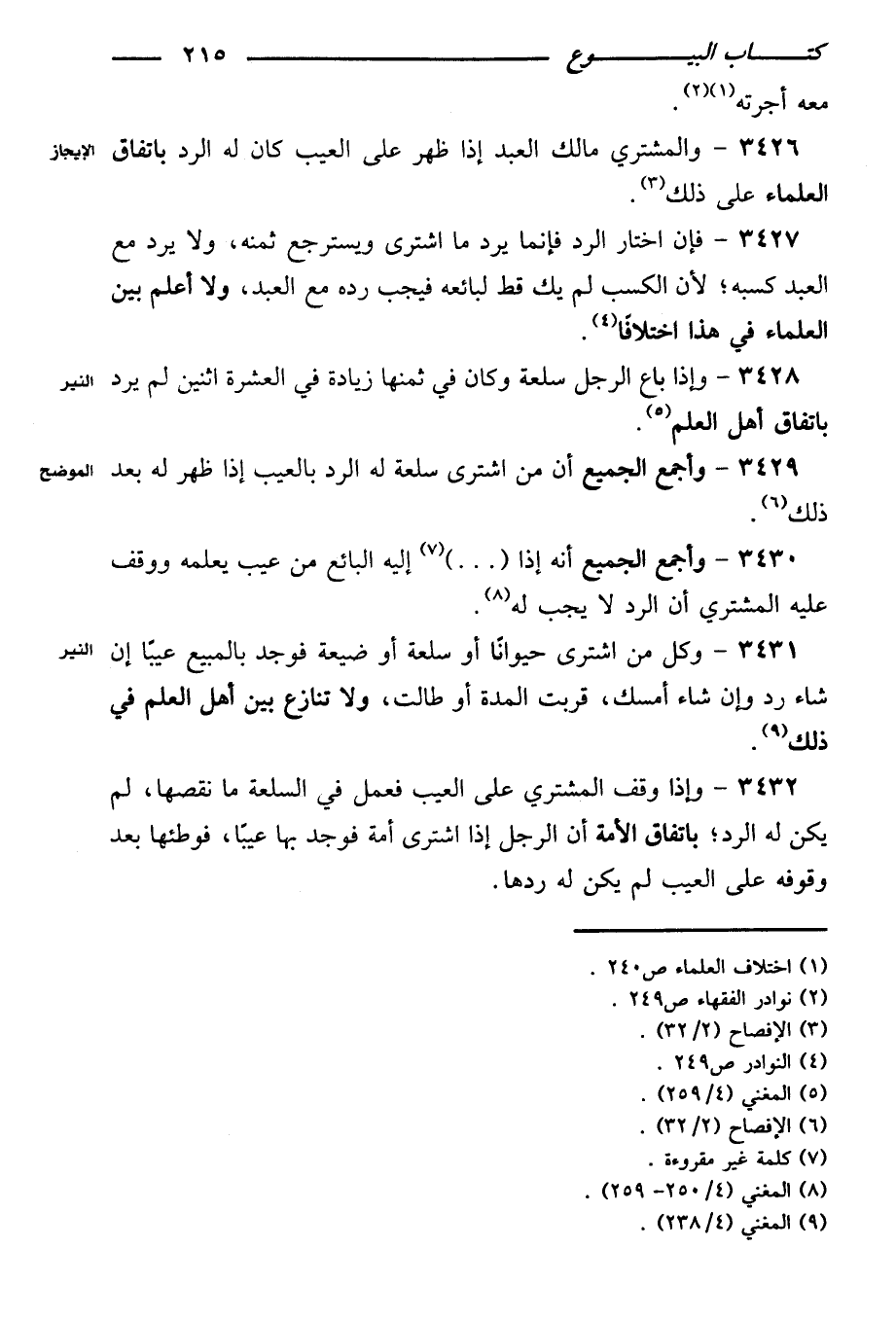 ٣٤٢٩ - وأجمع الجميع أن من اشترى سلعة له الرد بالعيب إذا ظهر له بعد ذلك.