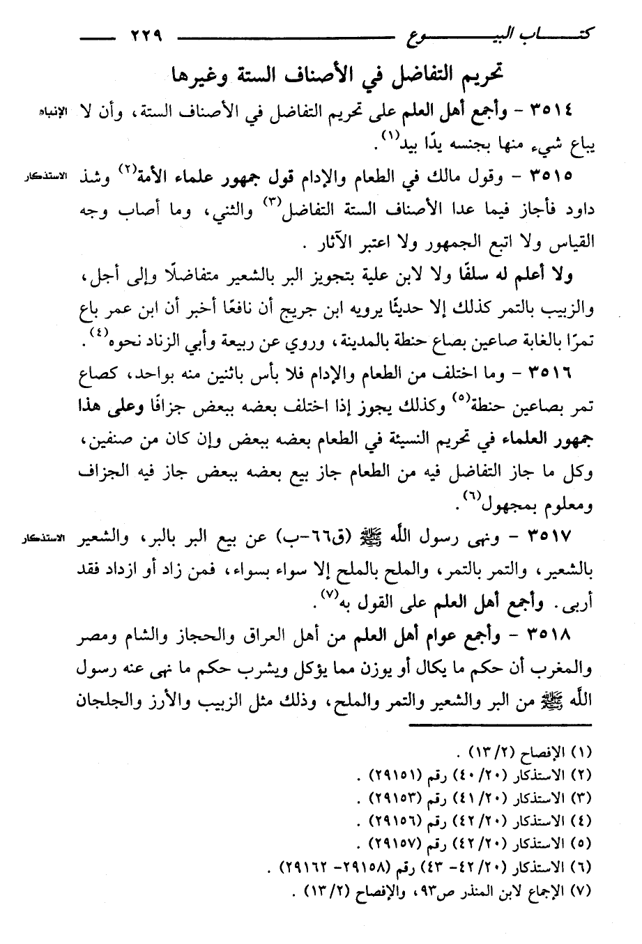٣٥١٤ - وأجمع أهل العلم على تحريم التفاضل في الأصناف الستة، وأن لا يباع شيء منها بجنسه بدًا بيد.