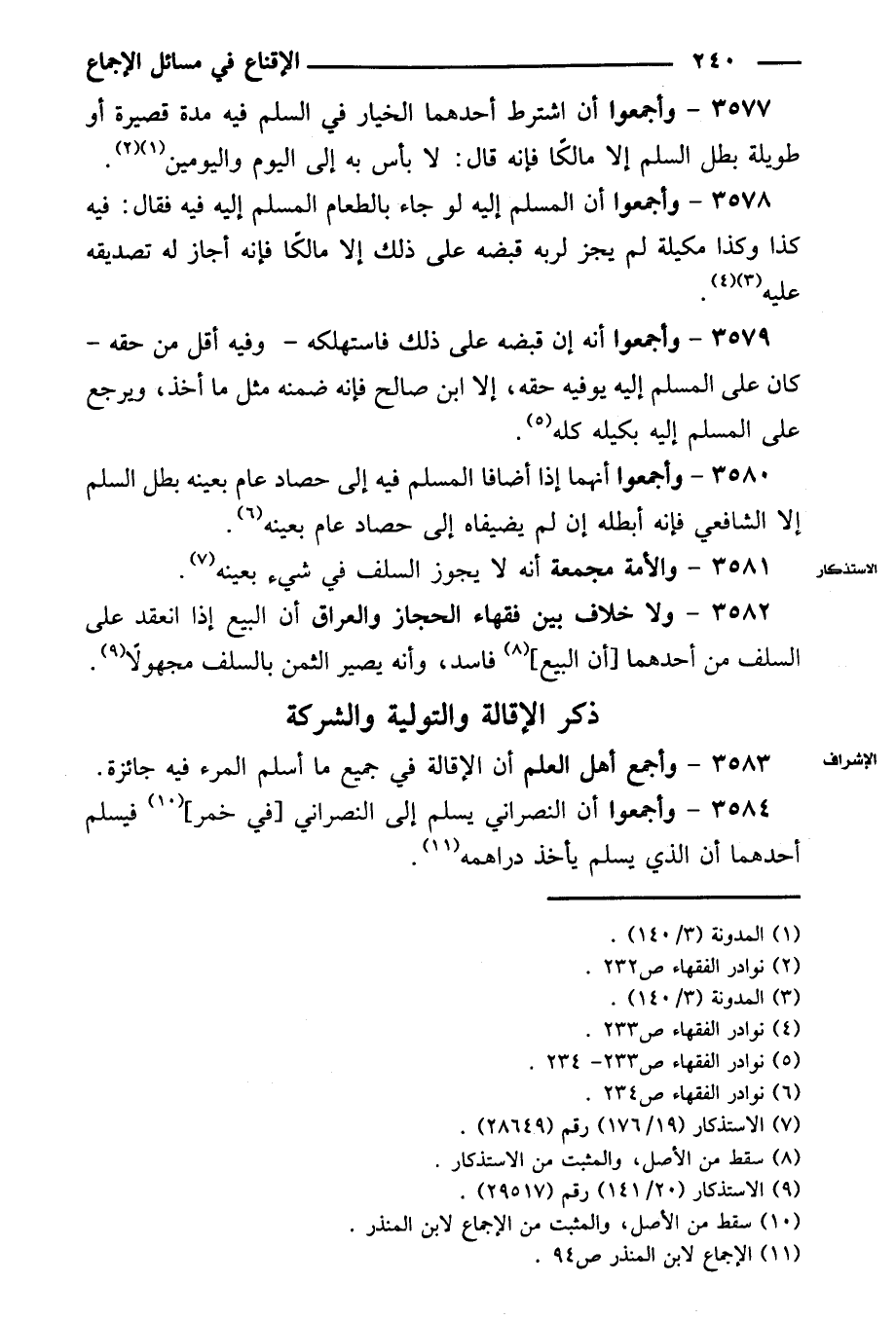 ٣٥٨٣ - وأجمع أهل العلم أن الإقالة في جميع ما أسلم المرء فيه جائزة.