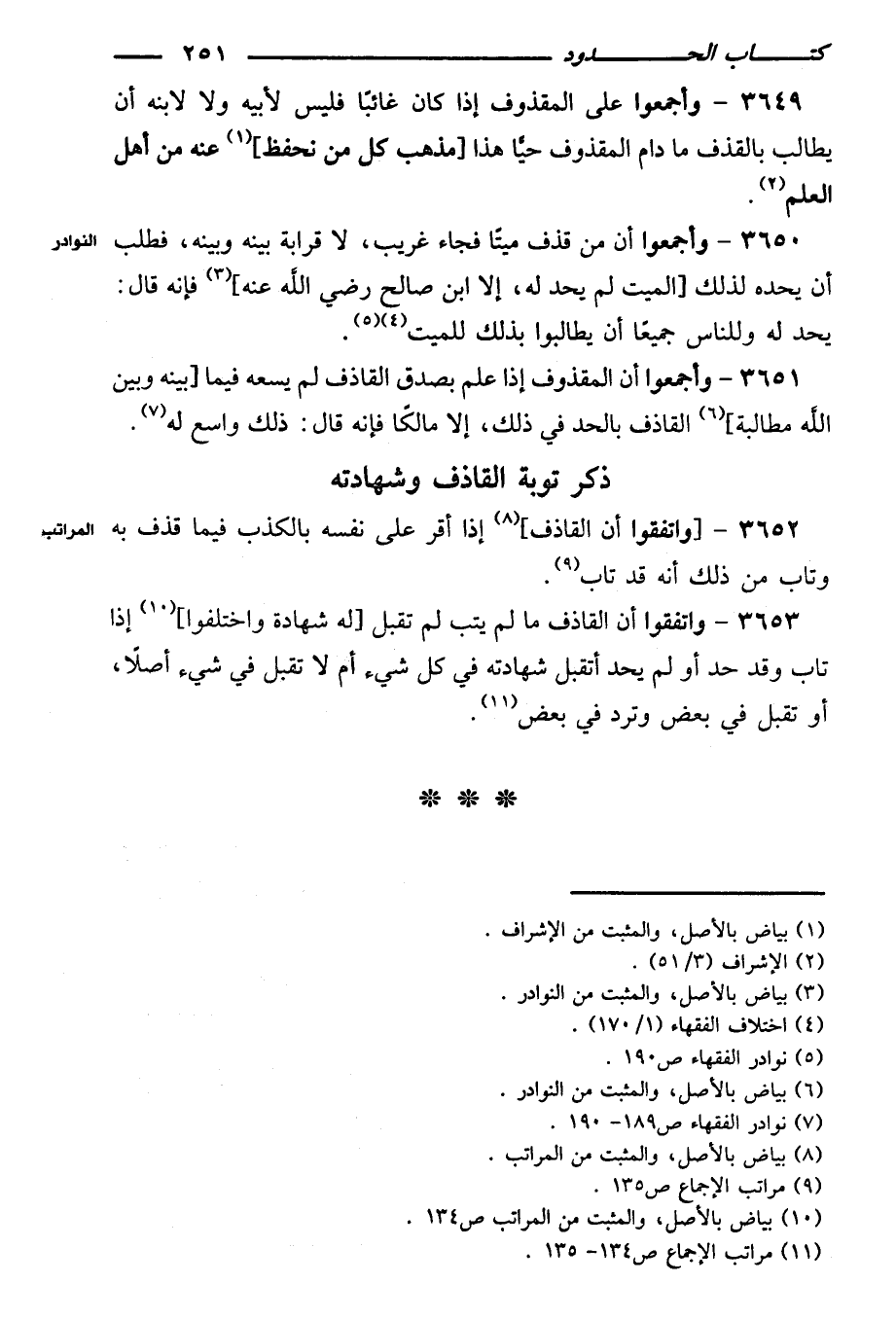 ٣٦٥٢ - [واتفقوا أن القاذف] إذا أقر على نفسه بالكذب فيما قذف به وتاب من ذلك أنه قد تاب.