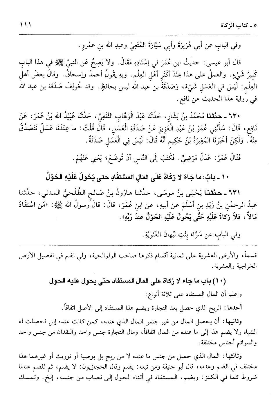 باب ما جاء لا زكاة على المال المستفاد حتى يحول عليه الحول
