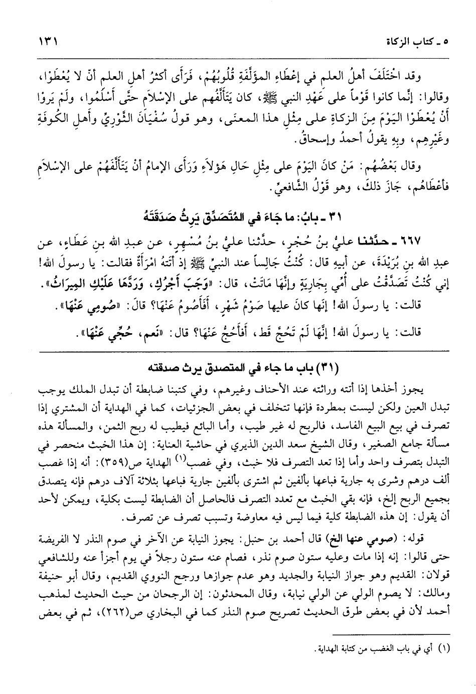 [667] يجوز أخذها إذا أتته وراثته عند الأحناف وغيرهم، وفي كتبنا ضابطة أن تبدل الملك يوجب تبدل العين ولكن ليست بمطردة فإنها تتخلف في بعض الجزئيات، كما في الهداية أن المشتري إذا تصرف في بيع البيع الفاسد، فالربح له غير طيب، وأما البائع فيطيب له ربح الثمن، والمسألة هذه مسألة جامع الصغير، وقال الشيخ سعد الدين الذيري في حاشية العناية: إن هذا الخبث منحصر في التبدل بتصرف واحد وأما إذا تعد التصرف فلا خبث، وفي غصب الهداية ص (359) : أنه إذا غصب ألف درهم وشرى به جارية فباعها بألفين ثم اشترى بألفين جارية فباعها بثلاثة آلاف درهم فإنه يتصدق بجميع الربح إلخ، فإنه بقي الخبث مع تعدد التصرف فالحاصل أن الضابطة ليست بكلية، ويمكن لأحد أن يقول: إن هذه الضابطة كلية فيما ليس فيه معاوضة وتسبب تصرف عن تصرف.
