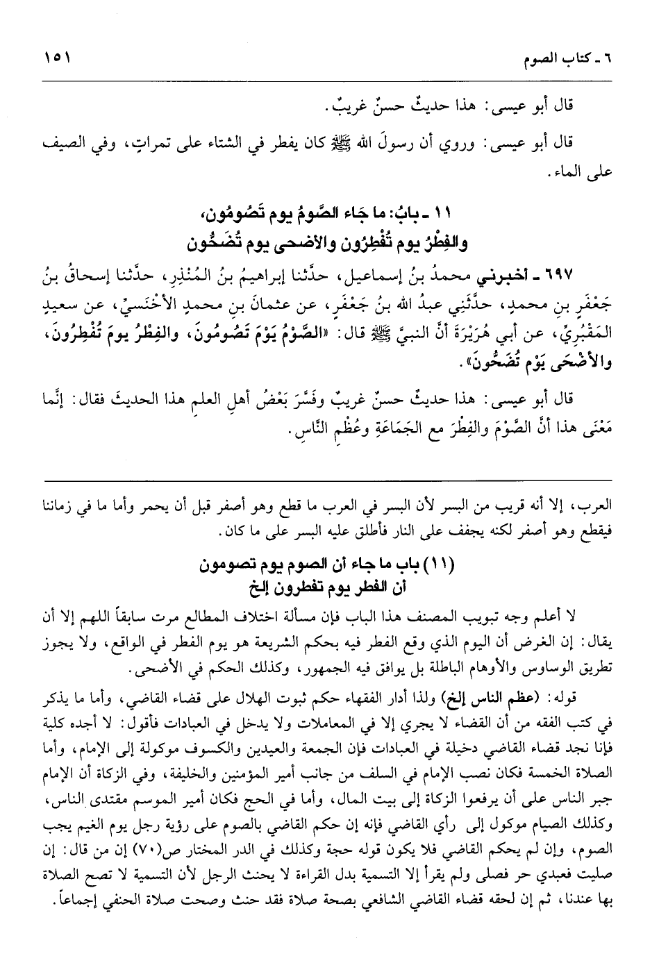 باب ما جاء أن الصوم يوم تصومون أن الفطر يوم تفطرون إلخ