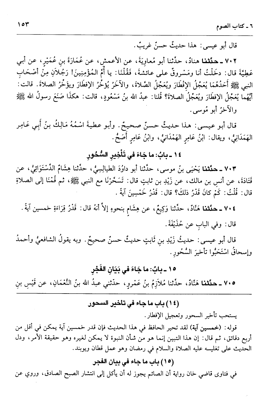 [703] يستحب تأخير السحور وتعجيل الإفطار.