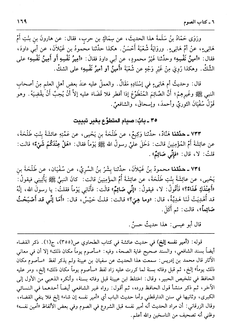 قوله: (أمير نفسه إلخ) في حديث عائشة في كتاب الطحاوي ص (355) ، ج (1) . ذكر القضاء أيضاً بسند الشافعي، والسند صحيح غاية الصحة، وفيه: «سأصوم يوماً مكان ذلك» إلا أن في معاني الآثار قال محمد بن إدريس: سمعت هذا الحديث عن سفيان بن عيينة ولم يذكر لفظ «سأصوم مكان ذلك يوماً» إلخ، ثم قبل وفاته بسنة لما كررت عليه زاد لفظ «سأصوم يوماً مكان ذلك» إلخ، ومر عليه الحافظ في تلخيص الحبير، وقال: اختلط ابن عيينة قبل وفاته بسنة، وأنكره الذهبي من الأول إلى الآخر، ثم ذكر منشأ قول الحافظ ورده، ثم أقول: رواه غير الشافعي أيضاً أحدهما في النسائي الكبرى، وثانيها في سنن الدارقطني وأما حديث الباب أي «أمير نفسه إن شاء» إلخ فلا ينفي القضاء، وقال الزرقاني: أن مراد الحديث أنه أمير نفسه قبل الشروع في الصوم وفي بعض الألفاظ «أمين نفسه» وظني أنه تصحيف من الناسخين والله أعلم.