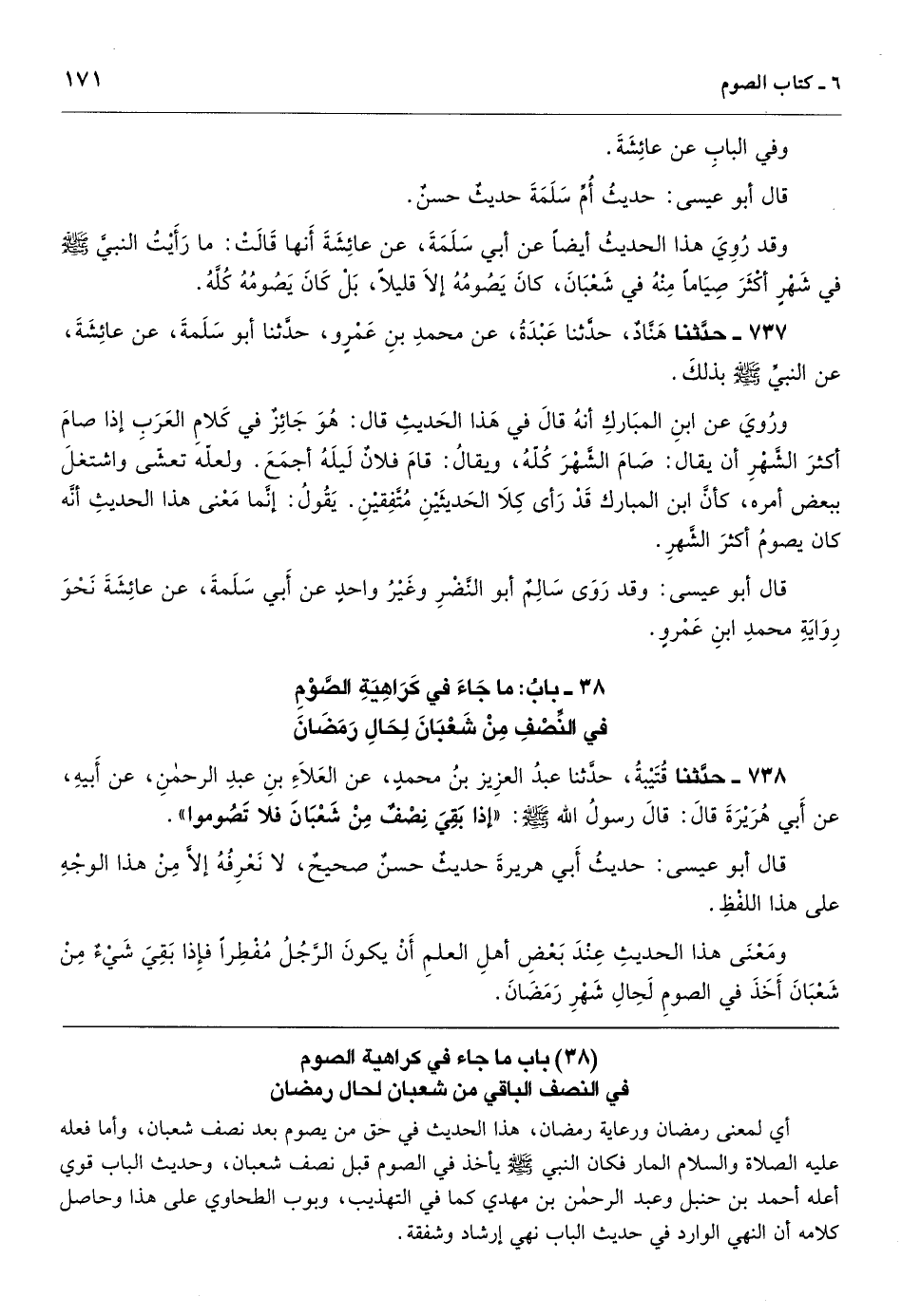 باب ما جاء في كراهية الصوم في النصف الباقي من شعبان لحال رمضان
