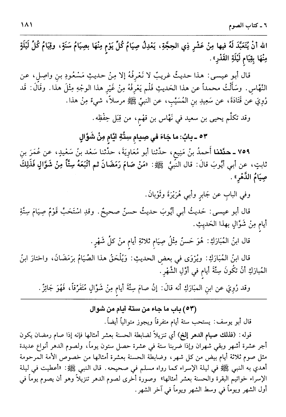 باب ما جاء من ستة أيام من شوال