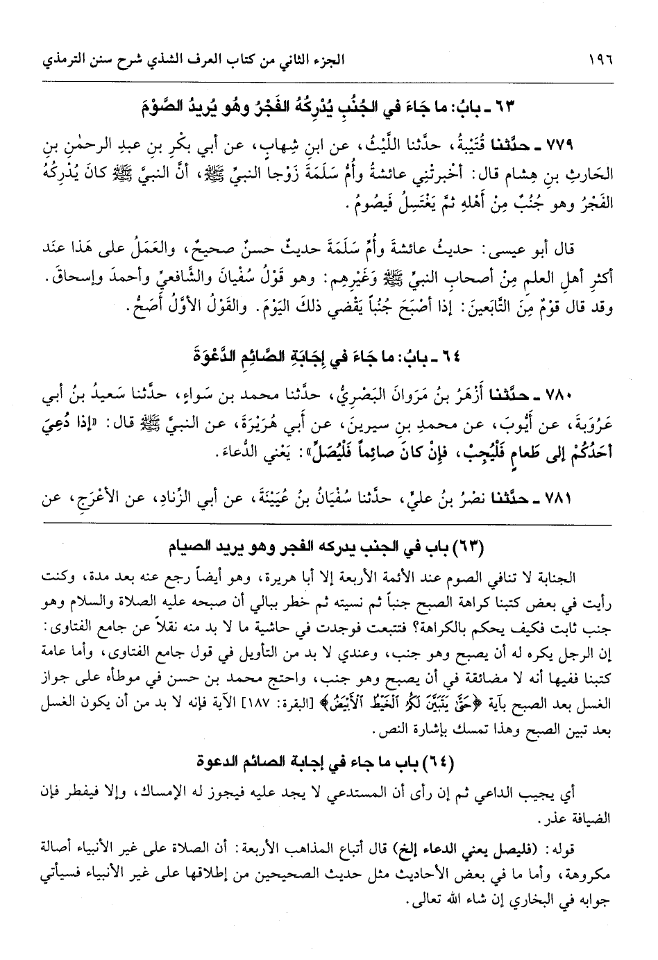 باب ما جاء في إجابة الصائم الدعوة