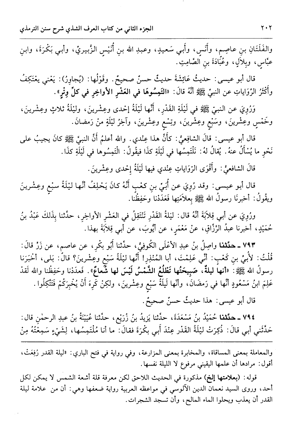 والمعاملة بمعنى المساقاة، والمخابرة بمعنى المزارعة، وفي رواية في فتح الباري: «ليلة القدر رُفِعَتْ، أقول: مرادها أن علمها اليقيني مرفوع لا الليلة نفسها.