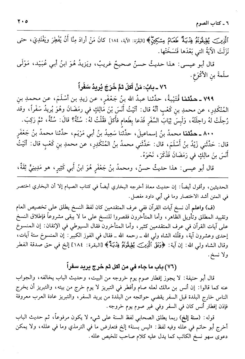 [799] قال أبو حنيفة: لا يجوز إفطار صوم يوم خروجه من البيت، وحديث الباب يخالفه، والجواب عنه كما قالوا: إن أنس بن مالك لعله صام وأفطر في التبريز لا يوم خرج من بيته، والتبريز أن يخرج الناس خارج البلدة قبل السفر يقضي حوائجه من البلدة من يريد السفر، والتبريز عادة العرب معروفة فإذن إفطار أنس كان في السفر وفي غير صوم يوم خروجه.