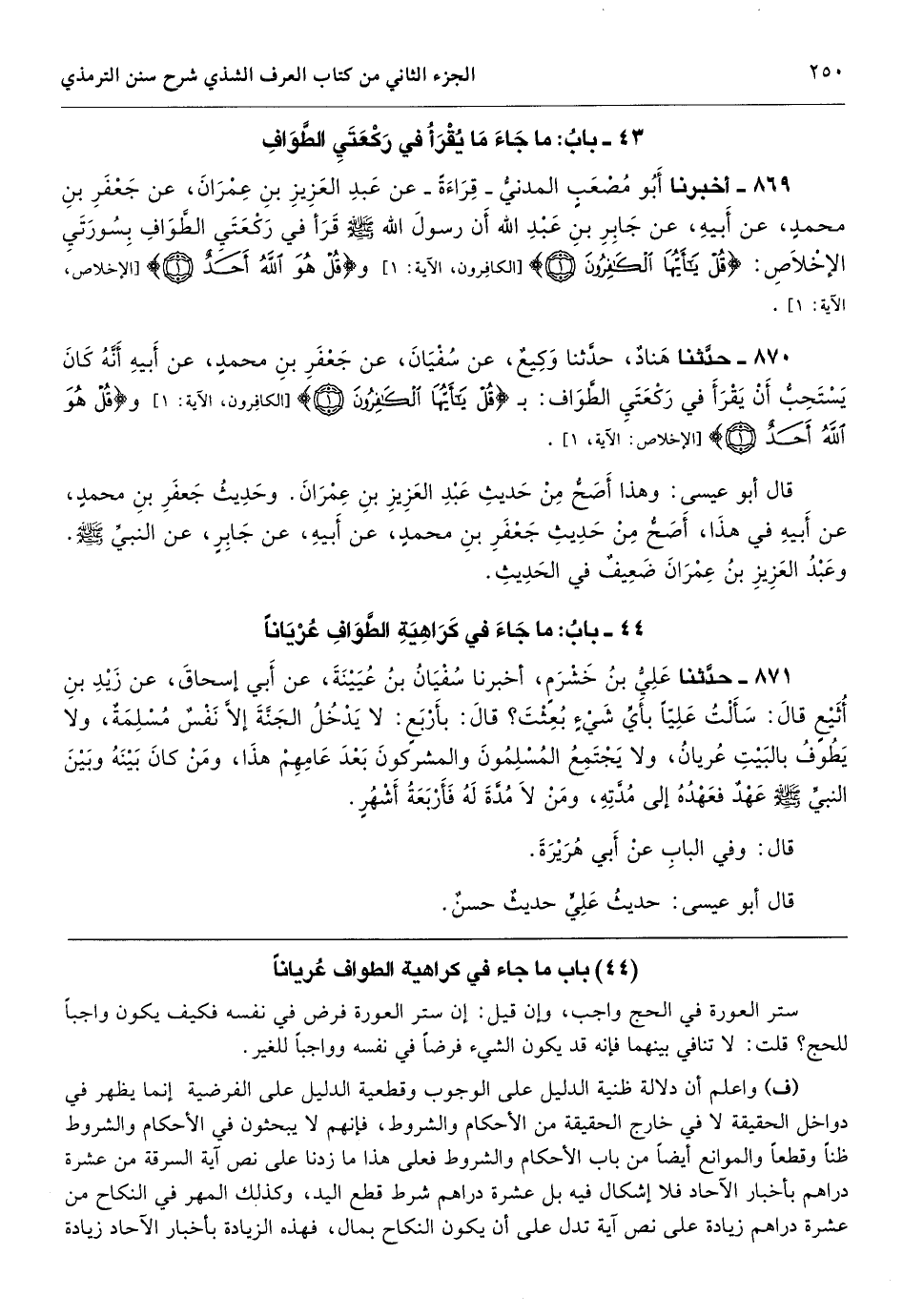 باب ما جاء في كراهية الطواف عريانا