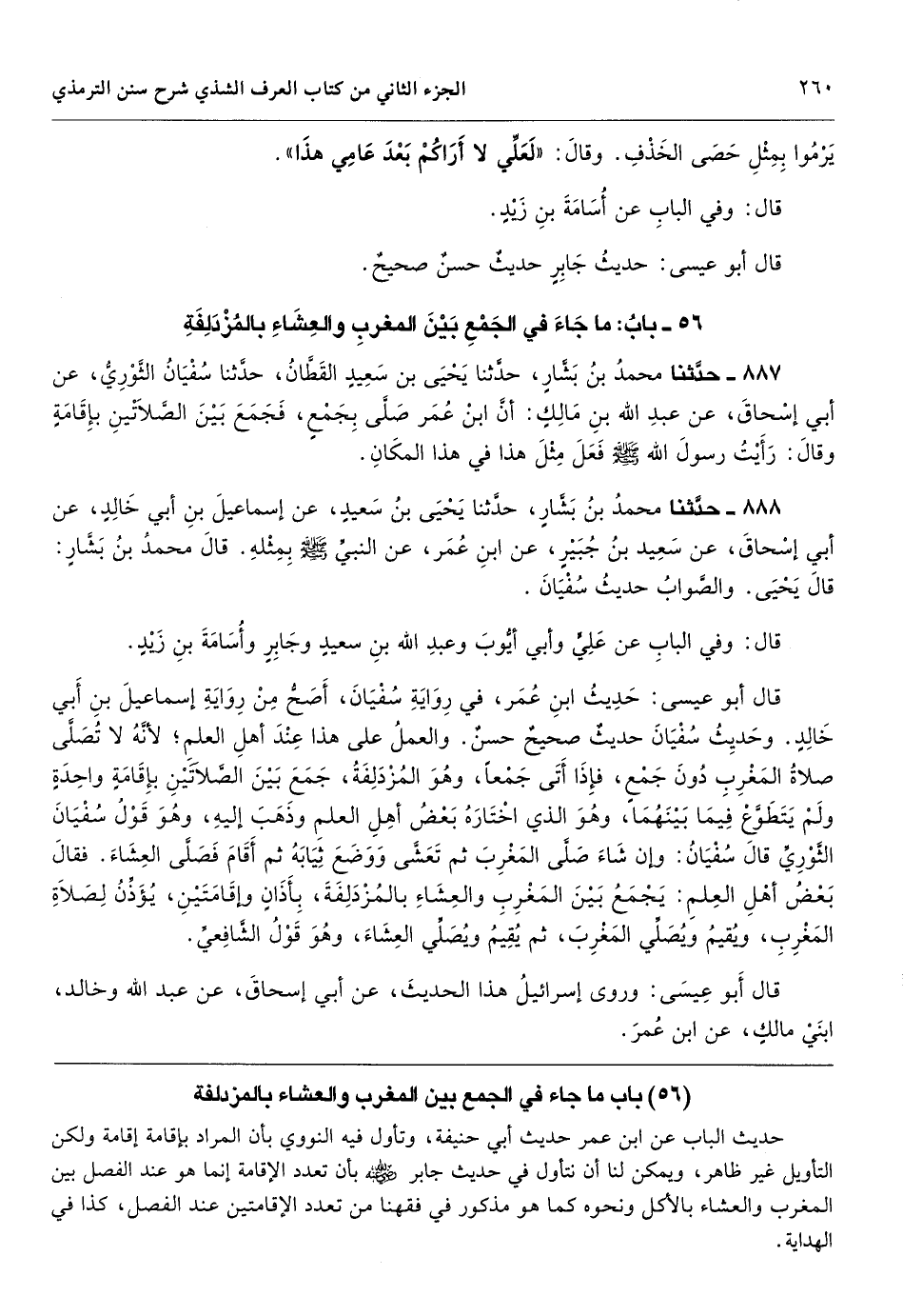 باب ما جاء في الجمع بين المغرب والعشاء بالمزدلفة