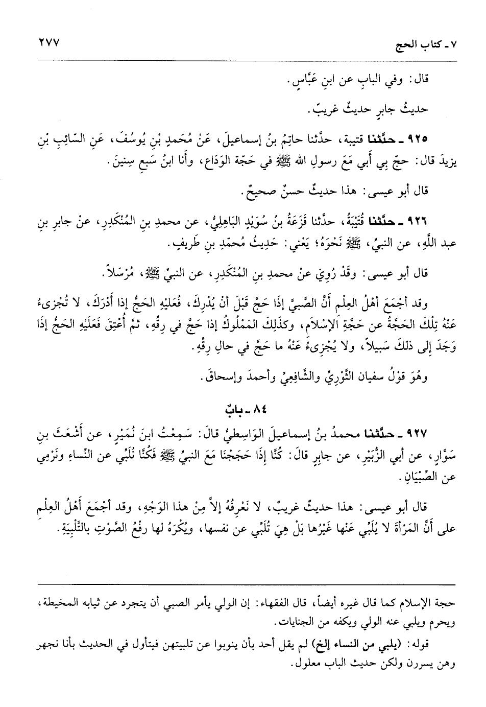حجة الإسلام كما قال غيره أيضاً، قال الفقهاء: إن الولي يأمر الصبي أن يتجرد عن ثيابه المخيطة، ويحرم ويلبي عنه الولي ويكفه من الجنايات.