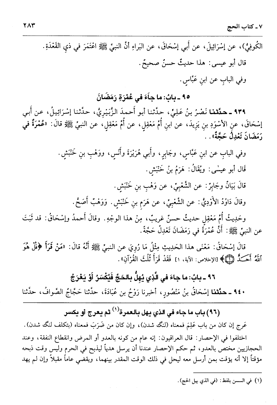 باب ما جاء في الذي يهل بالعمرة ثم يعرج أو يكسر